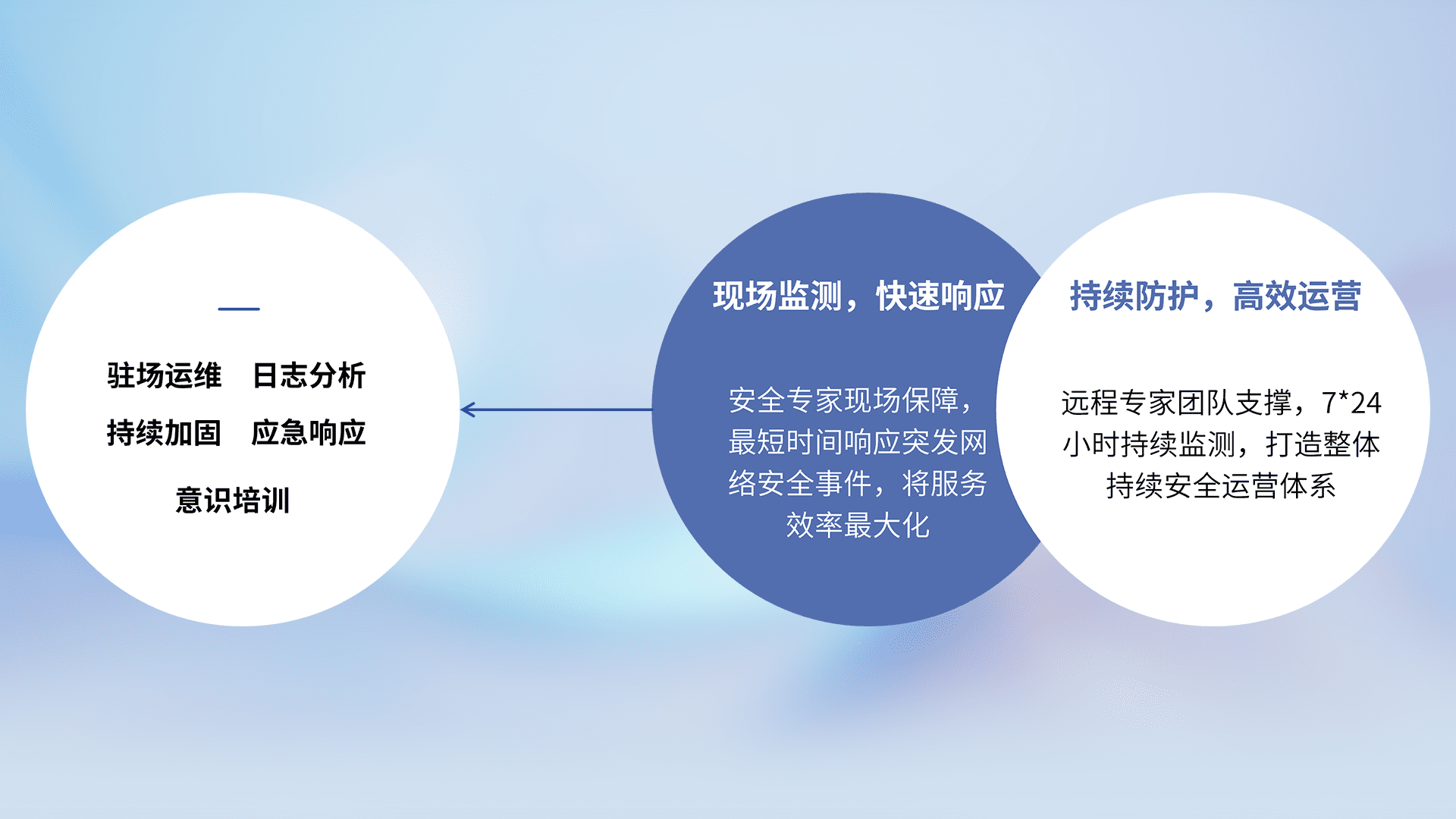 7X24小时持续监测安全事件,保持安全策略有效性,降低资产脆弱性风险,,,,精准拦截黑客攻击,,减少被黑客利用的机会,,,第一时间遏制,,,,降低损失。。